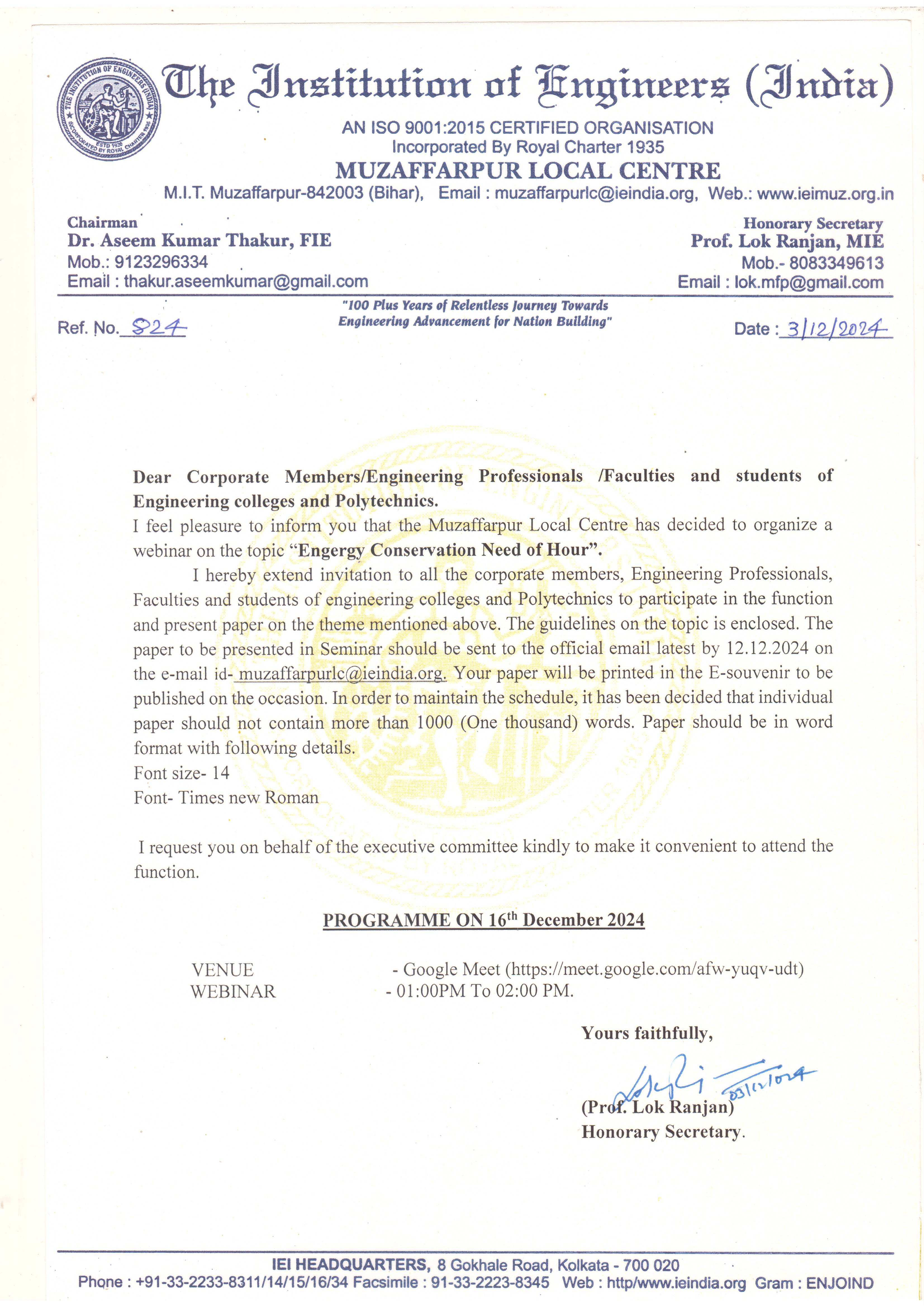 Prof. Lok Ranjan, MIE